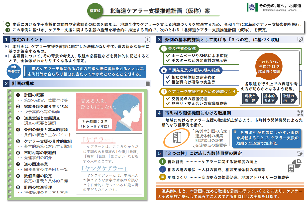 北海道ケアラー支援推進計画(仮称)素案の概要