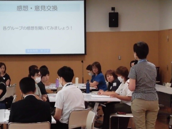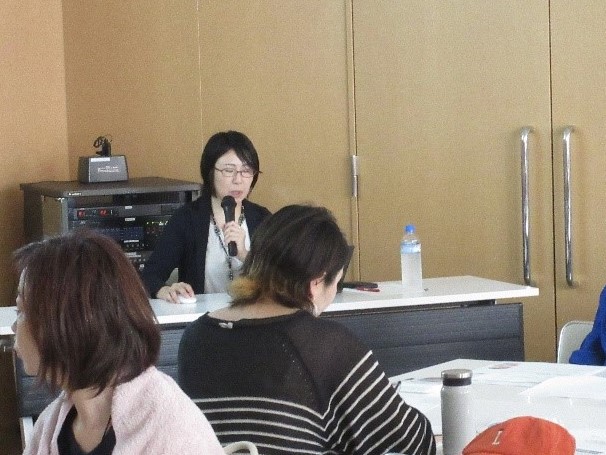まず始めに、講師である気象予報士の方から、自らのお仕事についてご紹介をいただいたあと、女性や子どもの視点に立った避難所運営について、参加者の皆さんと一緒に考えながら、災害対応や避難所運営の方針決定の場に、女性が積極的に参画することの必要性について理解を深めました。