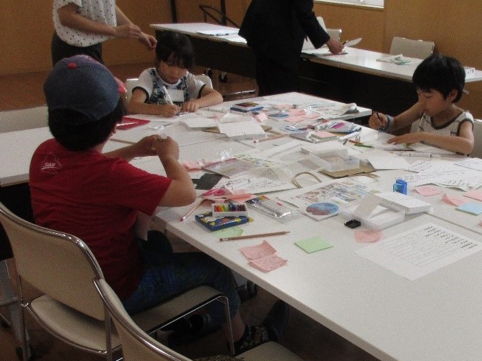 また、小学生対象に「防災かるたづくり体験」を行いました。「北海DO防災かるた」を使い、防災について学んだ後、オリジナルかるたを作りました。自分自身でかるたの読み札や取り札を考え、作成し、参加者の皆さんの前で一人ずつ発表して頂きました。