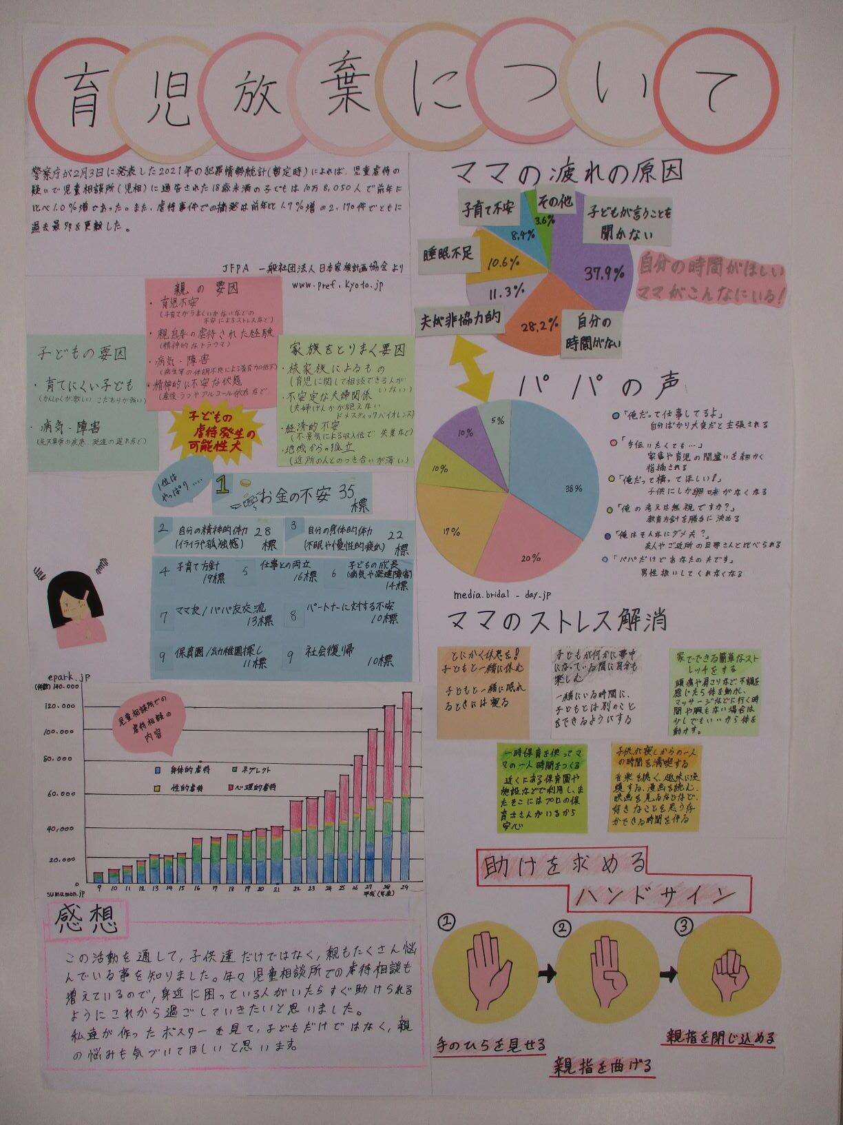 | 入選 | 育児放棄について | 亀石 澪 扇谷 姫來 藤塚 心乃羽 河本 美優 | 学校法人北海道龍谷学園小樽双葉高等学校 | 1 | |