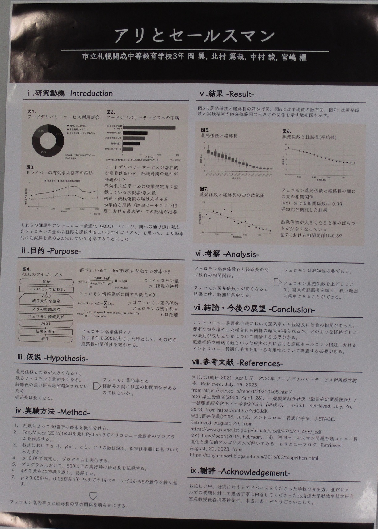 | 佳作 | アリとセールスマン | 岡 翼 北村 篤哉 中村 誠 宮嶋 櫂 | 市立札幌開成中等教育学校 | 3 | |